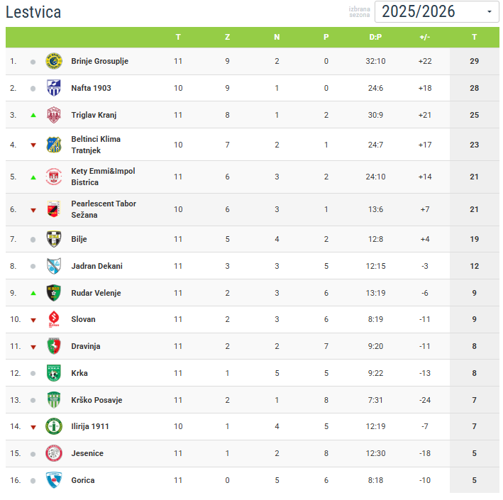 Po 11 odigranih krogih se NK Kety Emmi & Impol Bistrica nahaja na 5. mestu lestvice z 21 točkami, kar potrjuje dobro formo in stabilnost ekipe v letošnji sezoni.