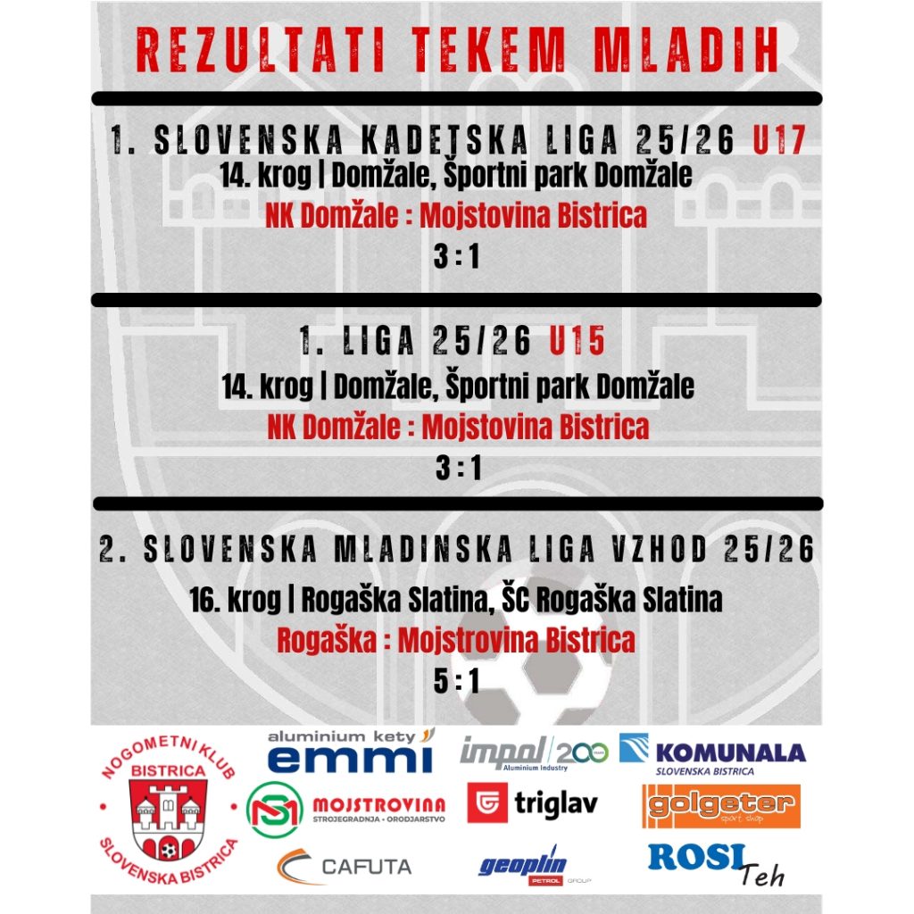 V zaključku jesenskega dela prvenstva so se selekcije Mojstrovine Bistrica pomerile z zahtevnimi nasprotniki. Kadeti U17 in selekcija U15 so gostovali v Domžalah, mladinska ekipa (U19) pa se je podala na zahtevno gostovanje v Rogaško Slatino. Čeprav so vse tri tekme rezultatsko pripadle domačinom, so bistriški nogometaši na vseh tekmah prikazali borben pristop, kar potrjuje dobro delo v jesenskem obdobju.