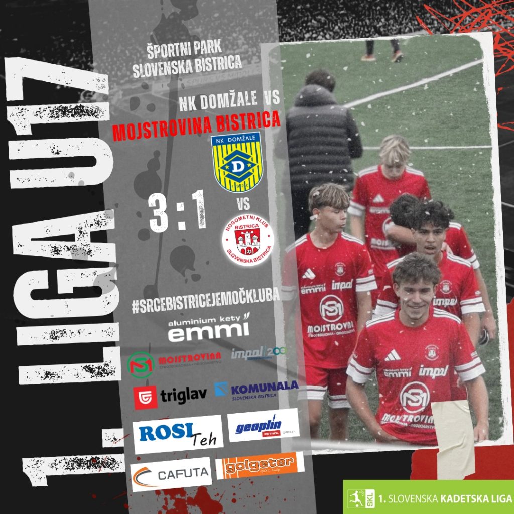 Kadetska ekipa U17 se je v Domžalah pomerila z vrstniki iz NK Domžale in izgubila s 3:1. Kljub porazu so fantje prikazali organizirano igro in bili nevarni v protinapadih, a jim je zmanjkalo nekaj natančnosti v zaključkih.