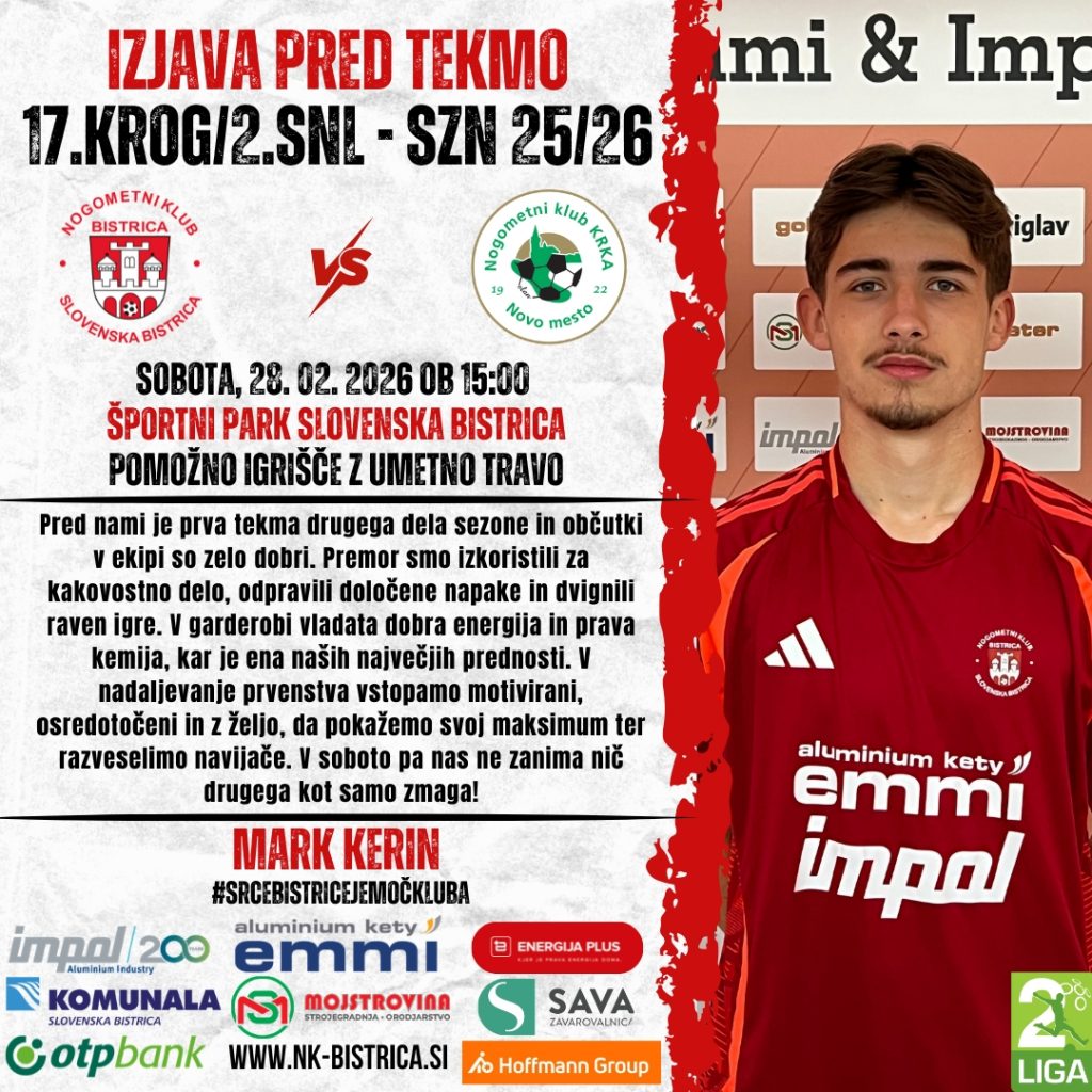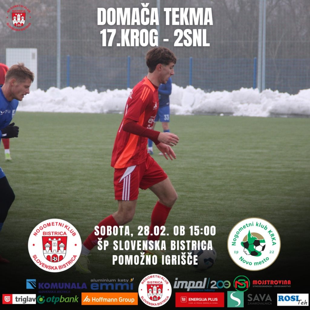V okviru 17. kroga bomo v soboto, 28. februarja 2026 ob 15.00, na pomožnem igrišču Športnega parka Slovenska Bistrica gostili ekipo NK Krka Novo mesto.