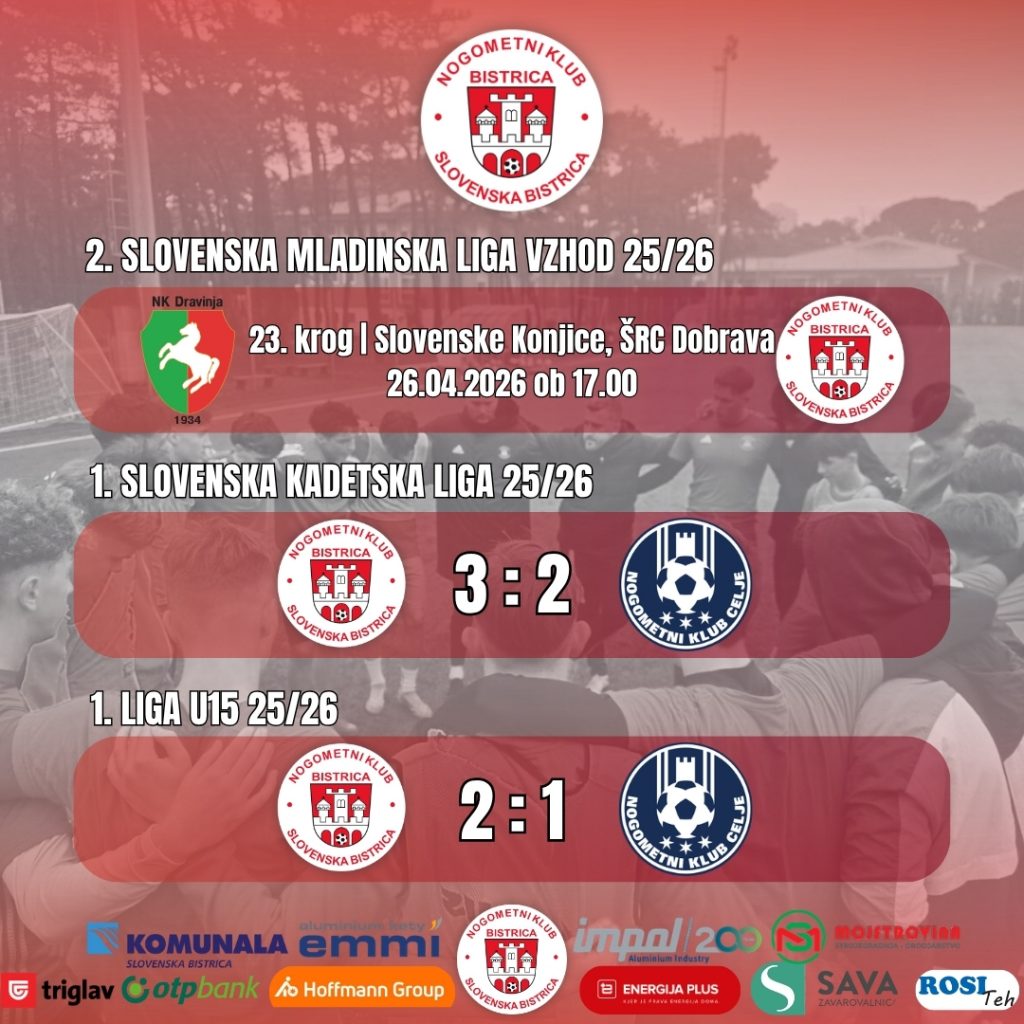 Tekma bo odigrana v nedeljo, 26. aprila 2026, ob 17:00 v Slovenskih Konjicah (ŠRC Dobrava), kjer bodo Bistričani iskali nove pomembne točke.